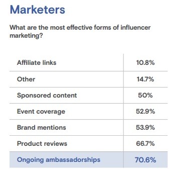 Los embajadores son la forma más efectiva de trabajar con influencers para las marcas y el contenido esponsorizado la más demandada en los influencers