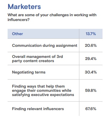 Para los marketeros el mayor reto es encontrar influencers mientras que para los influencers es recibir una compensación justa