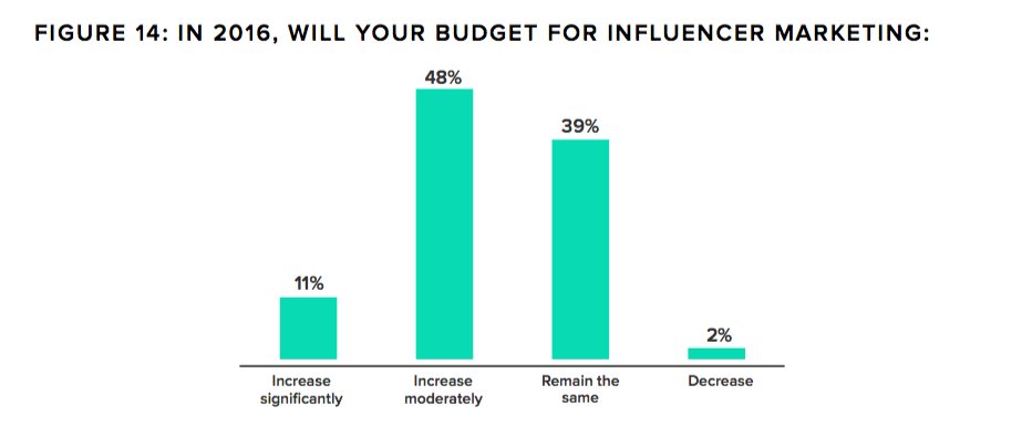 3. En 2016, el 60% incrementará su presupuesto en influencer marketing